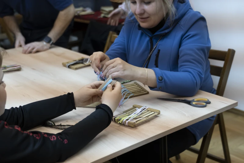 W dziale edukacji muzealnej odbywały się warsztaty tkackie, na których można było wykonać krajkę.