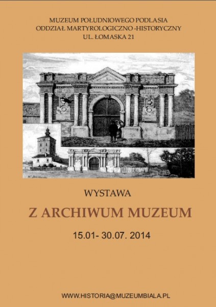 Muzeum Południowego Podlasia Oddział Martyrologiczno – Historyczny zaprasza Państwa na wystawę zorganizowaną z materiałów Archiwum Zakładowego Muzeum. Wystawa umożliwi Państwu prześledzenie historii bialskiego muzeum na podstawie materiałów znajdujących się w Archiwum, są to min.: dokumenty, fotografie, księgi, mapy, plakaty, zaproszenia i foldery wystaw stałych i czasowych. Wystawa czynna jest od 15.01.do 30.07.2014 roku.